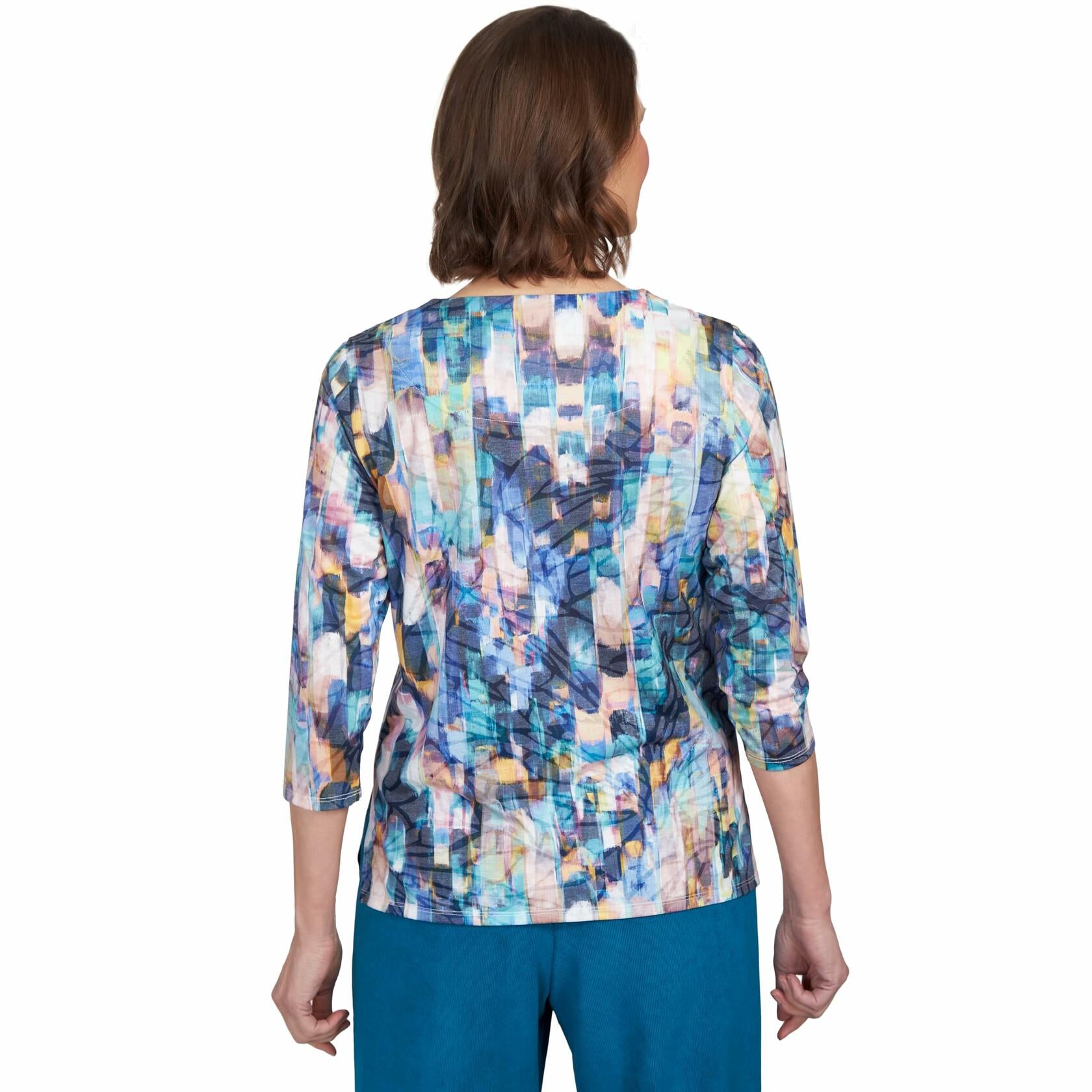 Alfred Dunner Brushstroke Lightweight Top (US, Alpha, Small, Regular, Regular, Standard, Denim)