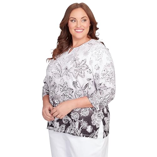 Alfred Dunner Classic Cotton Ombré Scroll with Split Neck Top Grey (US, Alpha, 2X, Plus, Regular, Plus Size, Grey)