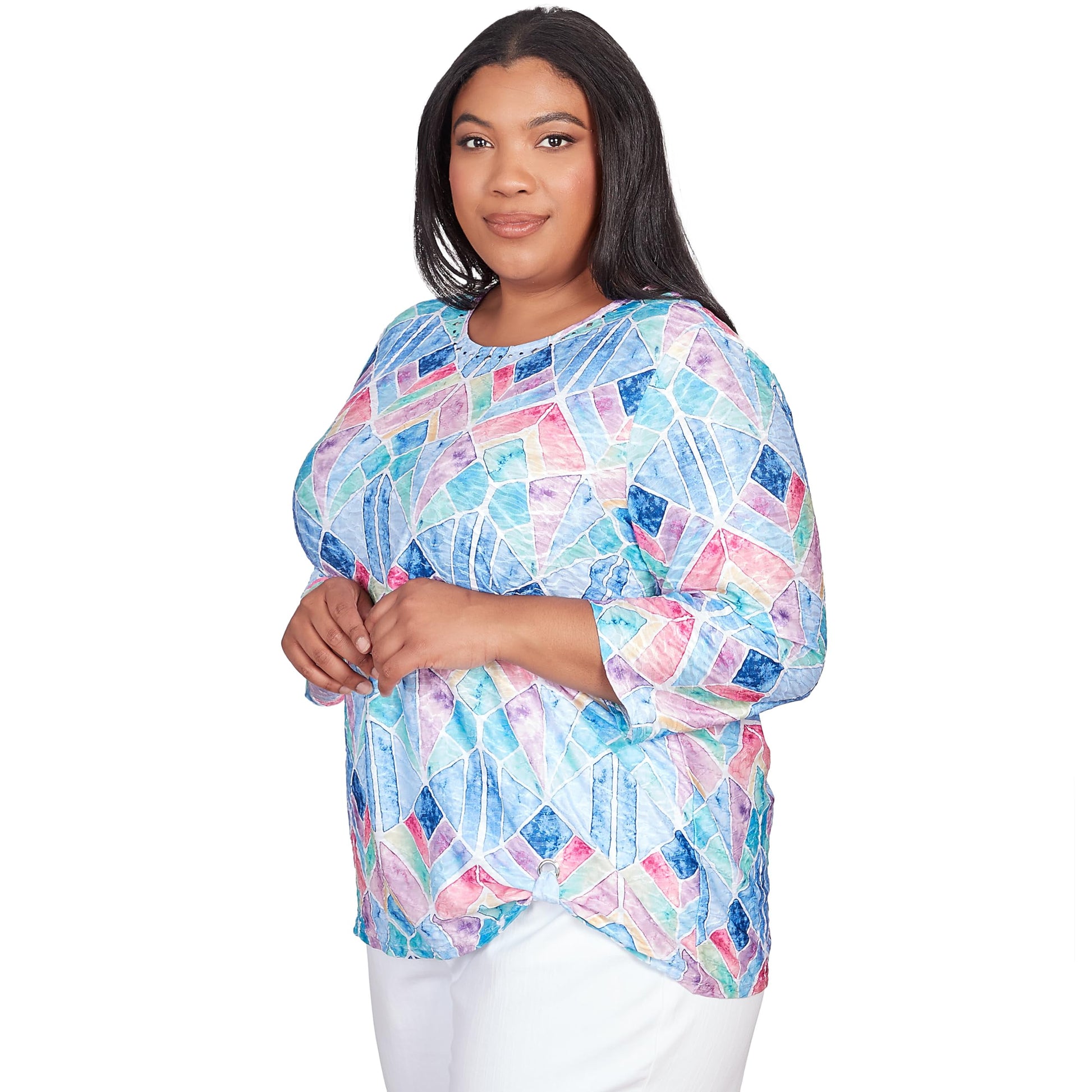 Alfred Dunner Classic Denim Stain Glass Polyester Top