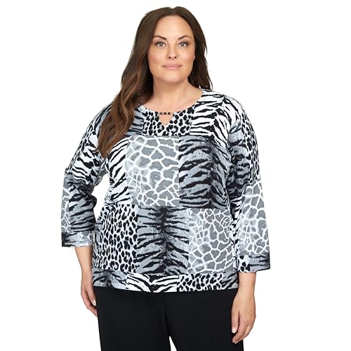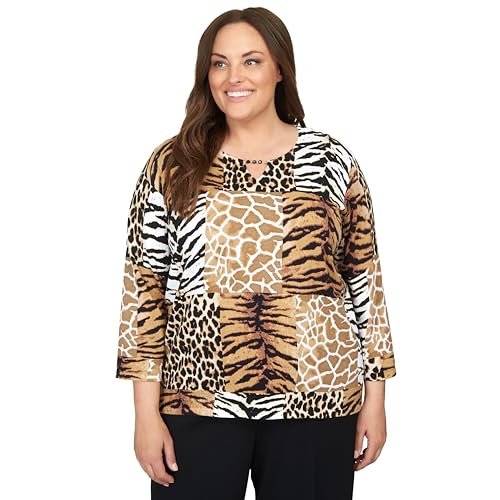 Alfred Dunner Classics Animal Patch Print Cotton Sweater