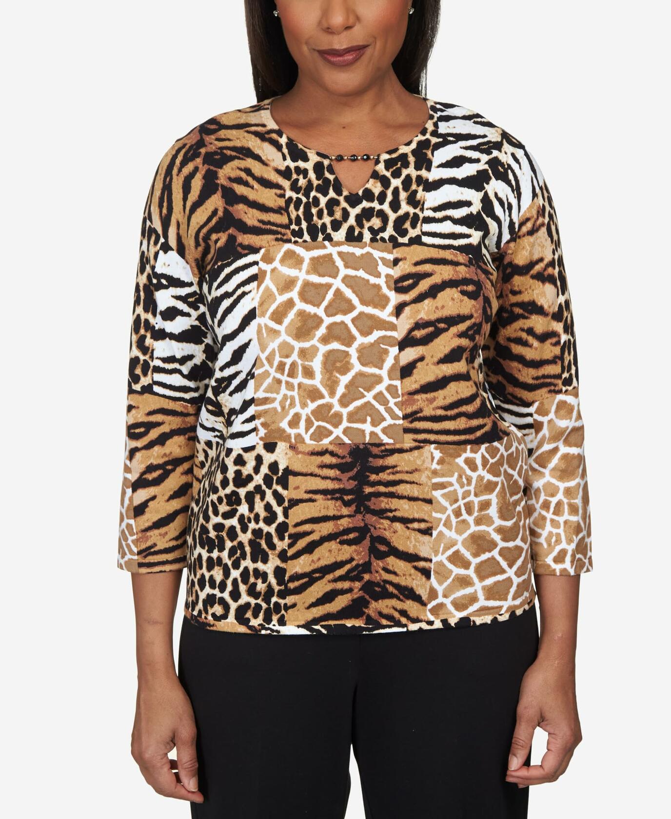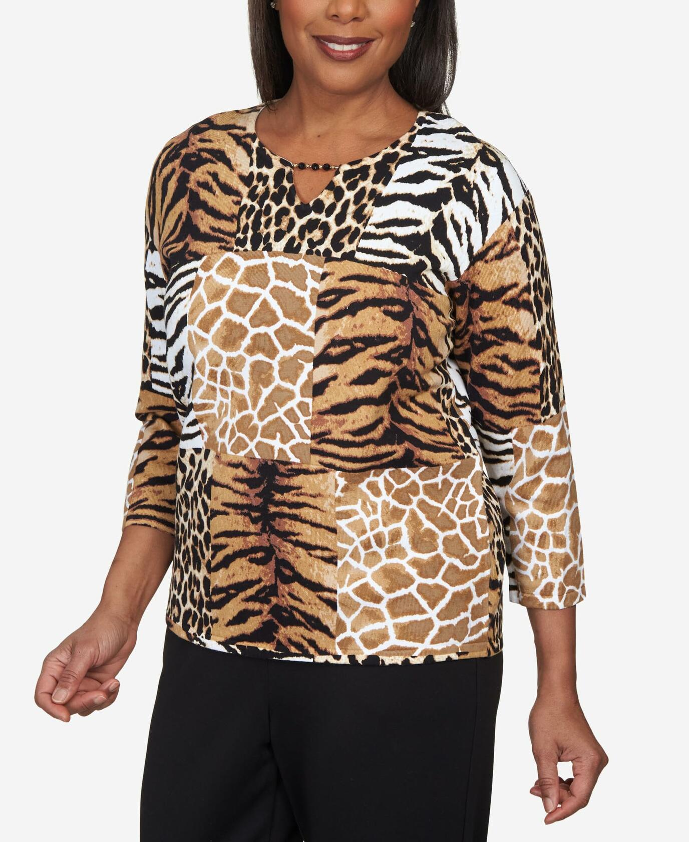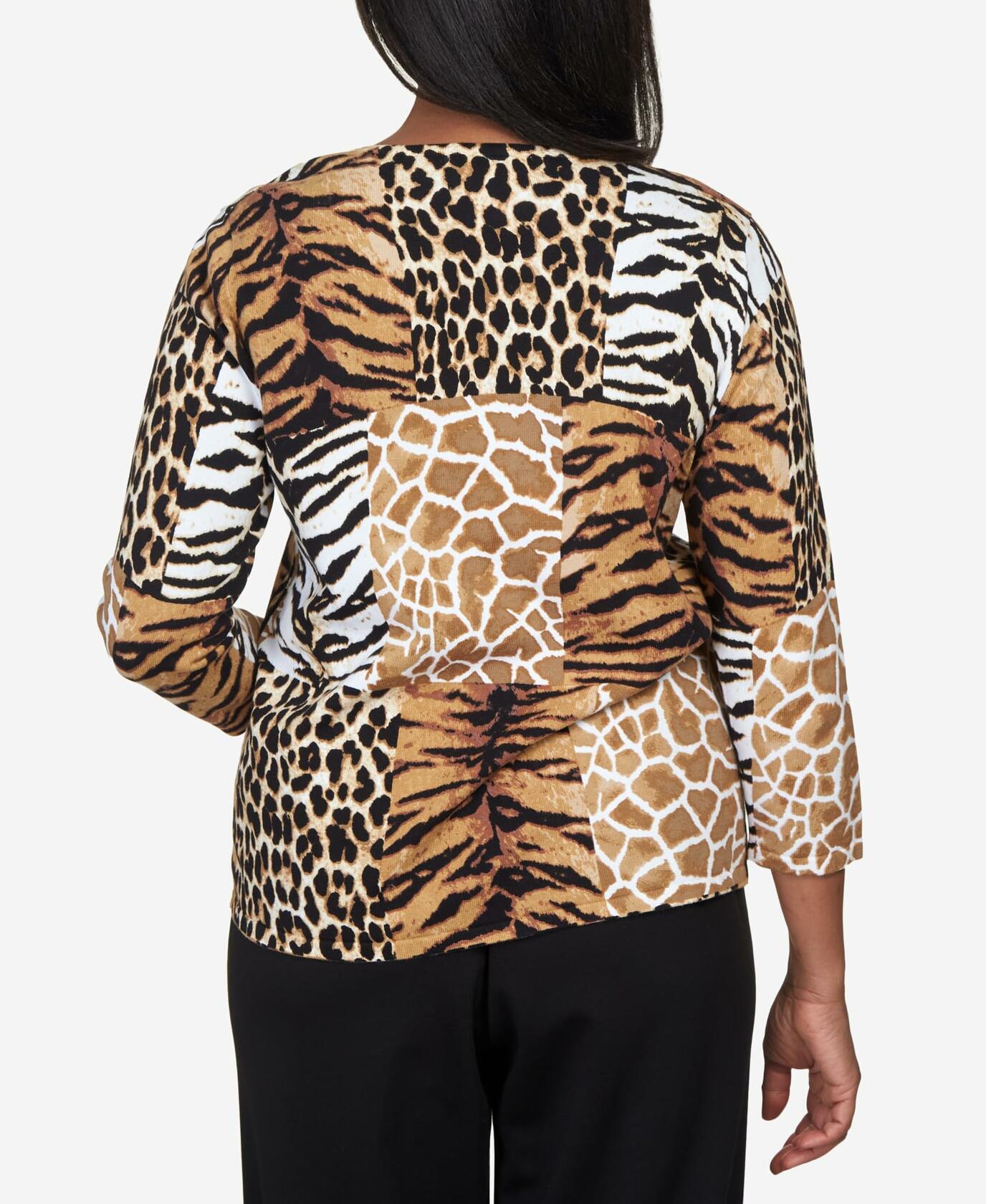 Alfred Dunner Classics Animal Patch Print Cotton Sweater
