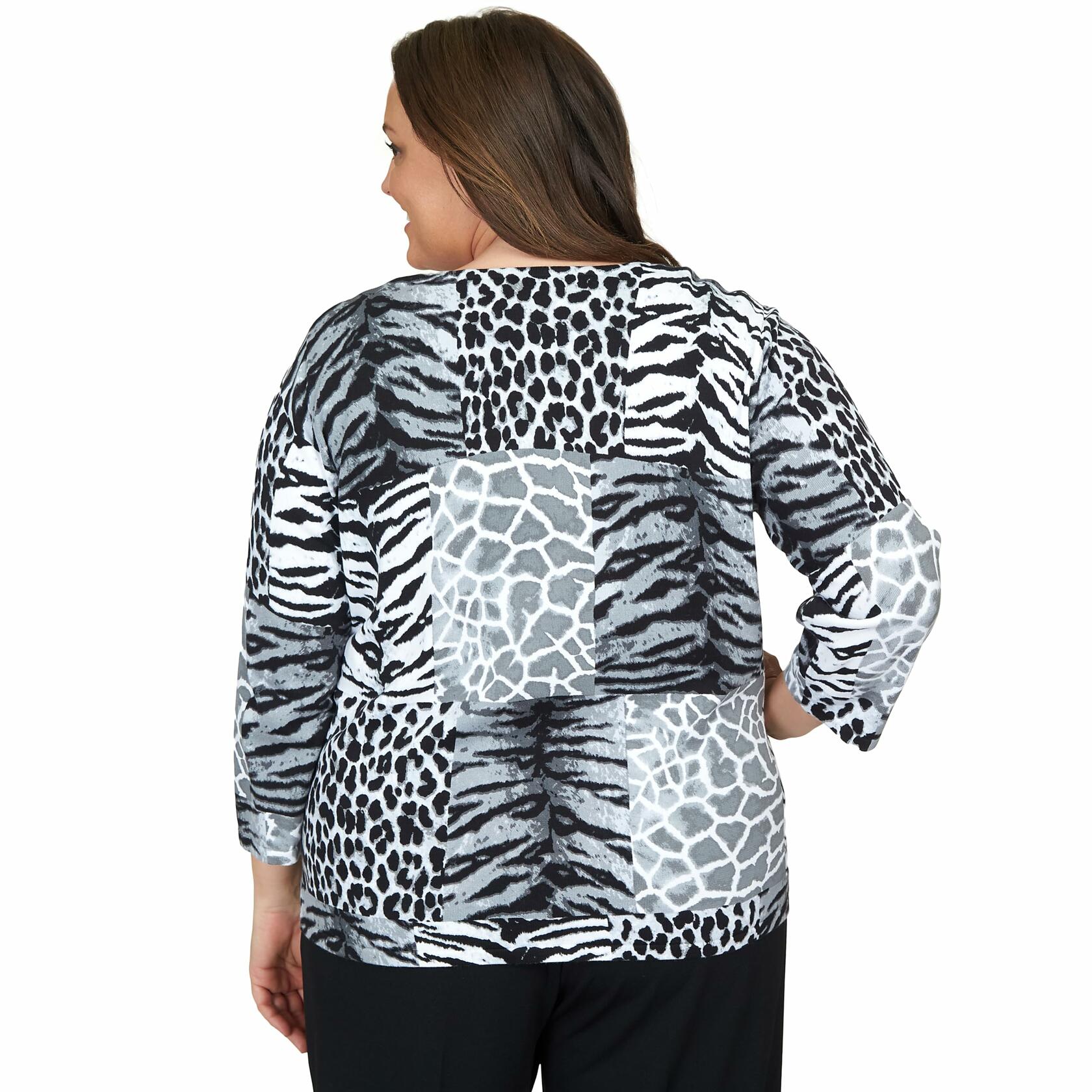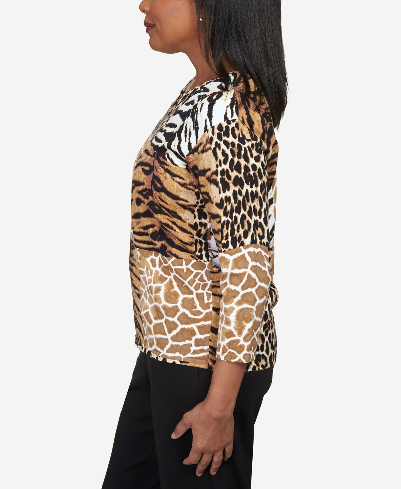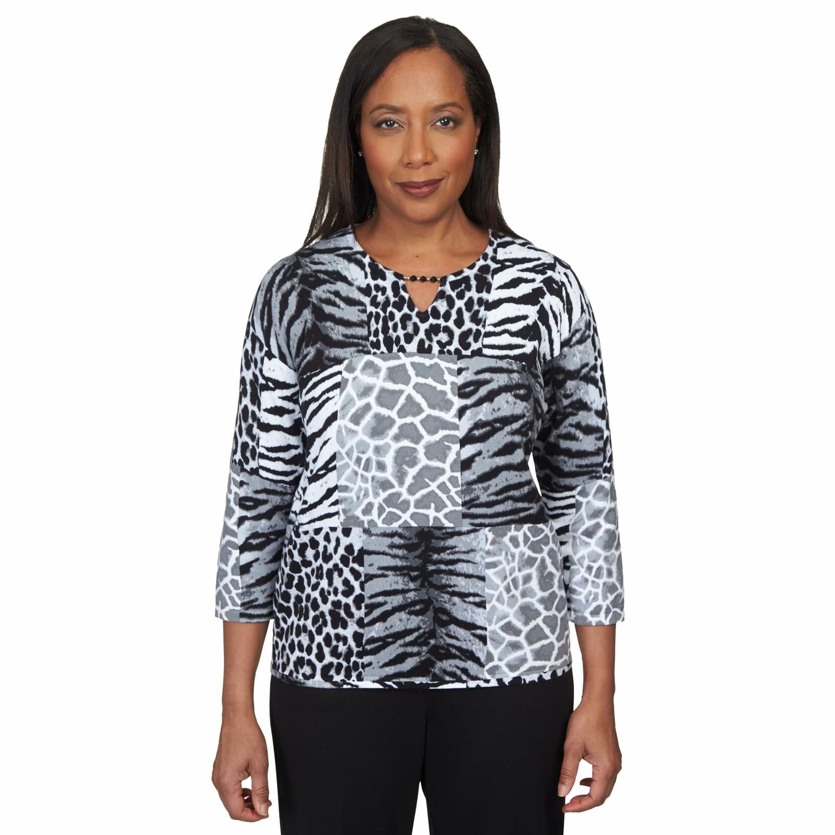 Alfred Dunner Classics Animal Patch Print Cotton Sweater