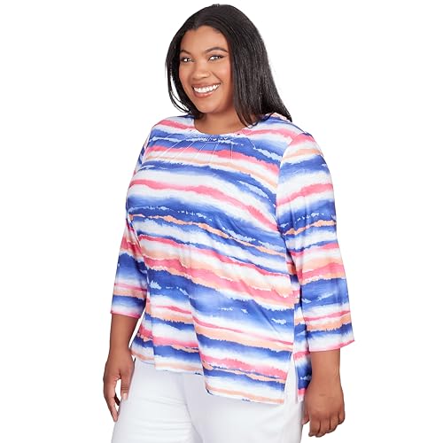 Alfred Dunner Classics Bright Watercolor Strip Biadre Polyester Top
