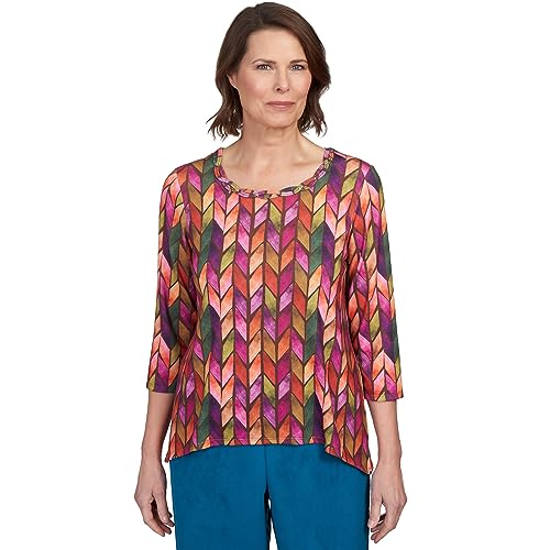 Alfred Dunner Classics Chevron Knit Polyester Top with Sharkbite Hem (US, Alpha, Small, Regular, Petite, Petite, Bright)