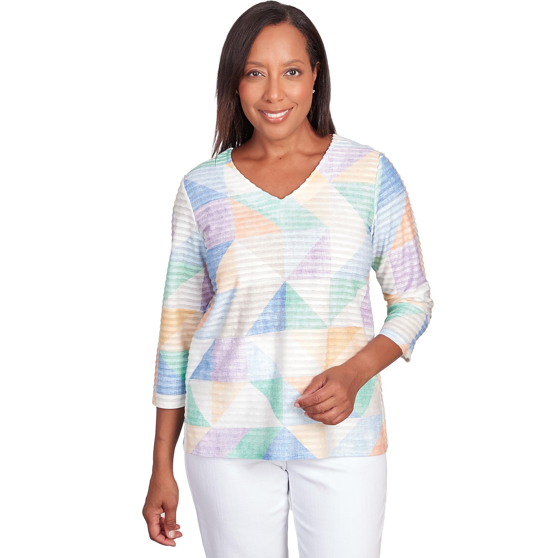 Alfred Dunner Classics Pastels Geometric Designs Polyester Tops 3/4 Sleeve