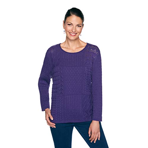 Alfred Dunner Classics Pullover Sweater Cable Stitch Cotton Acrylic (Size 1X) Grape
