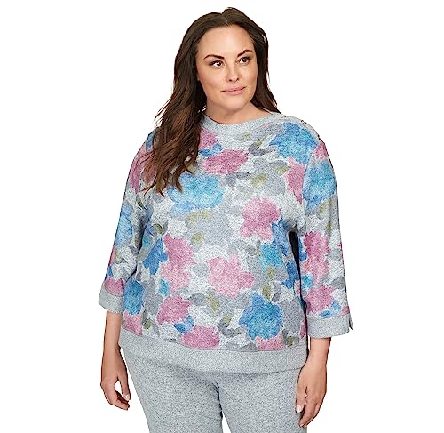 Alfred Dunner Comfort Zone Floral Sweater with Slit Hem (US, Alpha, X-Large, Regular, Regular, Standard, Multi)