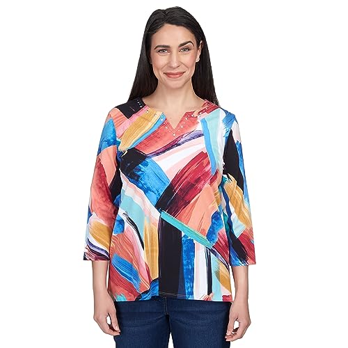 Alfred Dunner Cotton Brushstrokes Multicolor Top