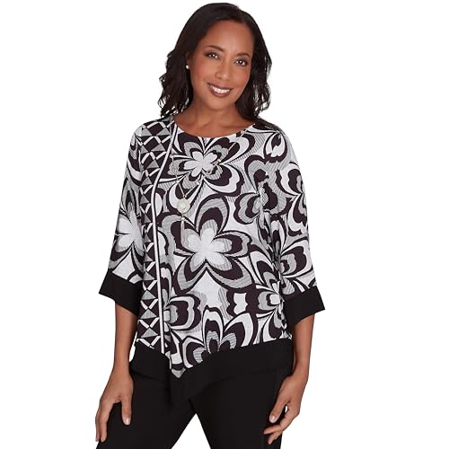 Alfred Dunner Runway Ready Black and White Metalic with Contrast Trim Polyester Top