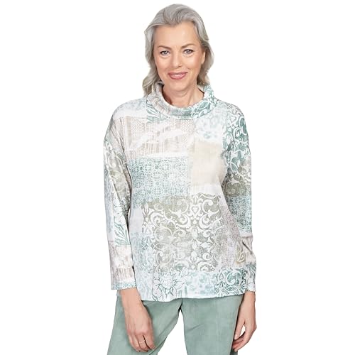 Alfred Dunner Shimmer Medallion Patchwork Cowl Neck Top