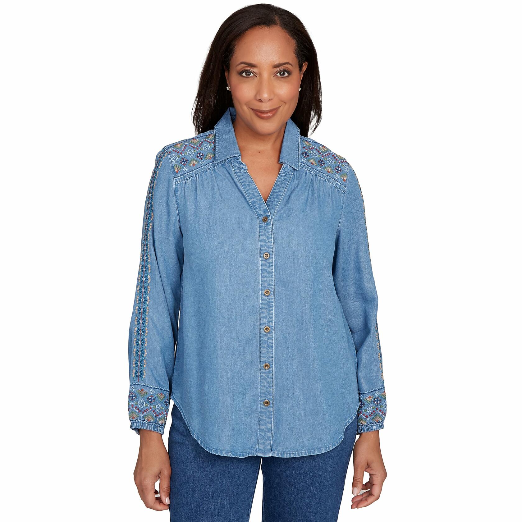 Alfred Dunner Sunset Canyon Tencel Embroidered Button Down Shirt