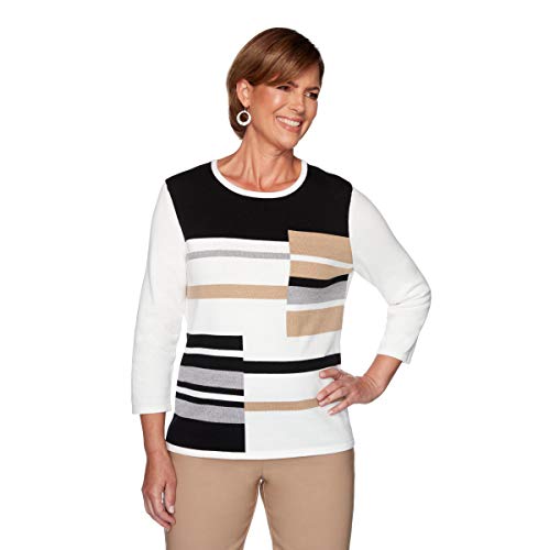 Alfred Dunner Sweater Color Block Cotton Acrylic (Ivory, 3X)