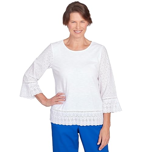 Alfred Dunner Tradewinds White Cotton/Polyester with Eyelit Trim
