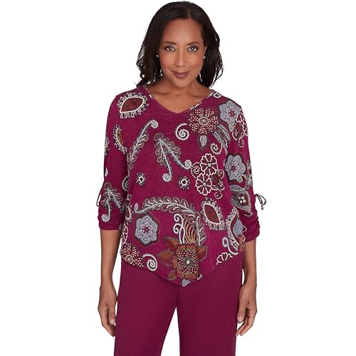 Alfred Dunner Wine Country Floral Medallion Polyester Top