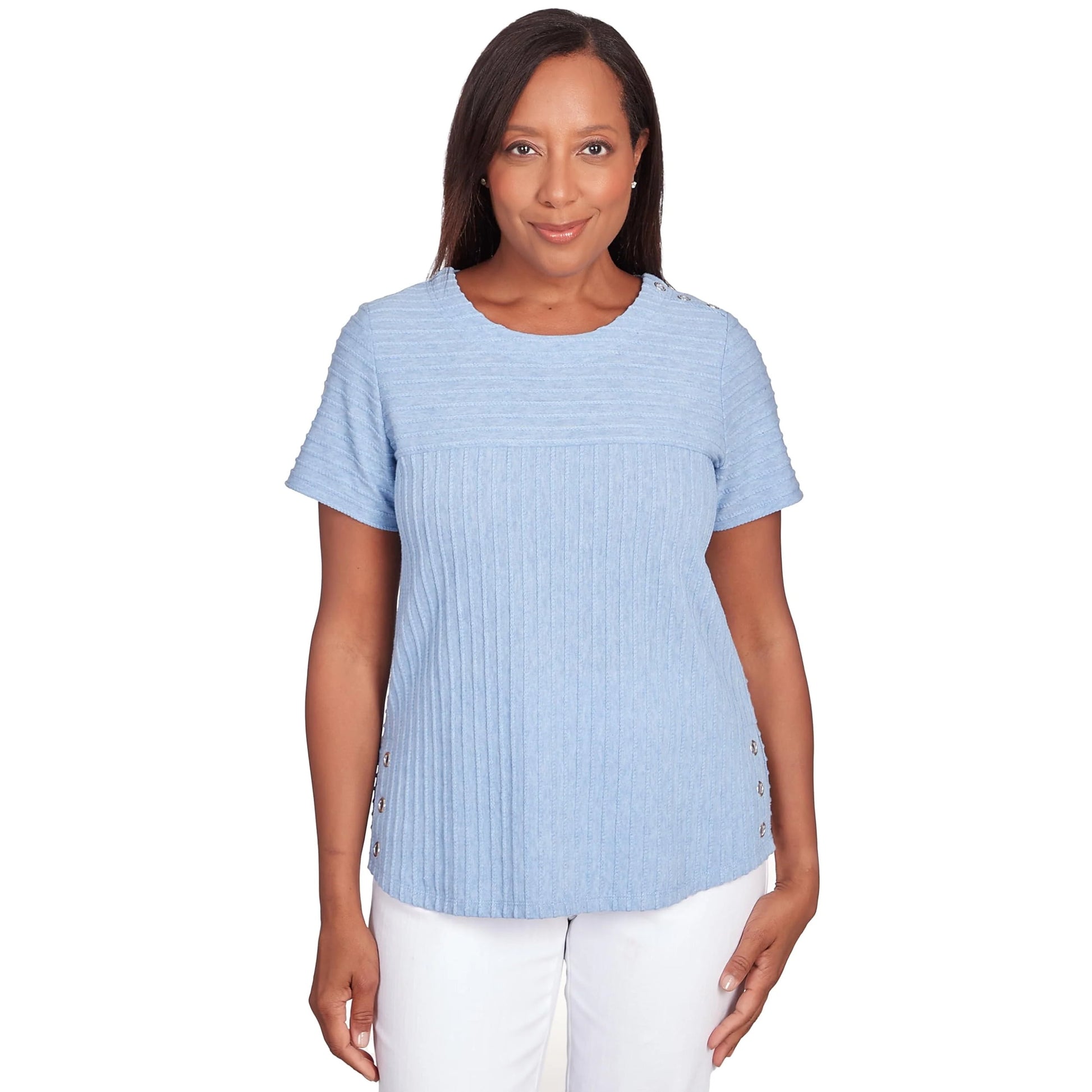 Alfred Dunner Women's Classics Brights Solid Texture Split Shirttail Tee