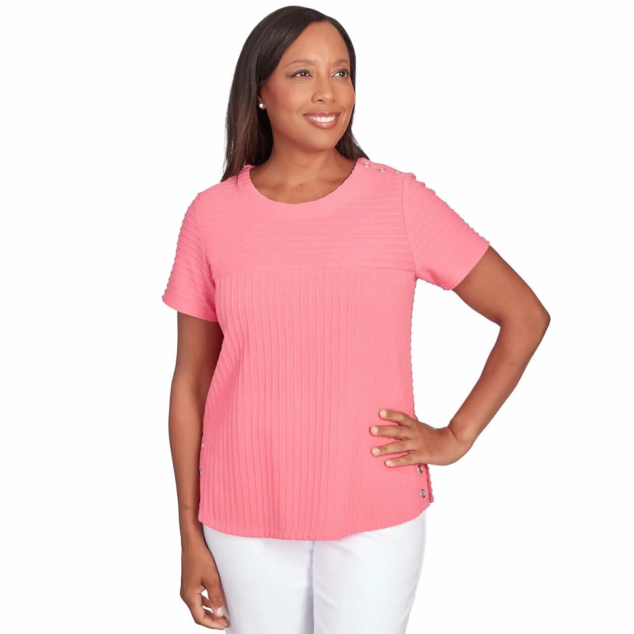 Alfred Dunner Women's Classics Brights Solid Texture Split Shirttail Tee