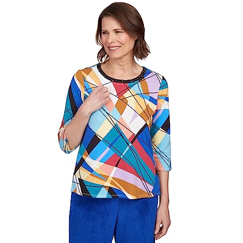 Alfred Dunner Women's Double Strap Crew Neck Abstract Top Size S Bright Multi