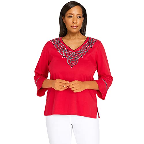 Alfred Dunner Women's Embroidered V-Neck 3/4 Sleeve Top
