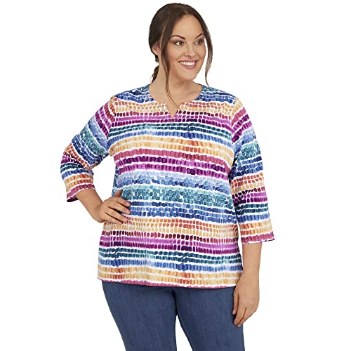 Alfred Dunner Women's Plus-Size Rainbow Dot Split Neck Top