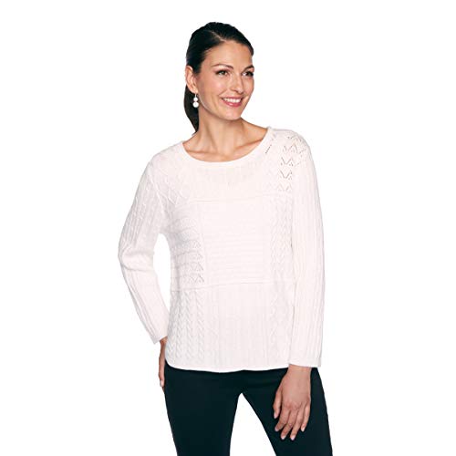 Classic Pullover Sweater Cable Stitch Pointelle Cotton Acrylic (Size 1X) Ivory