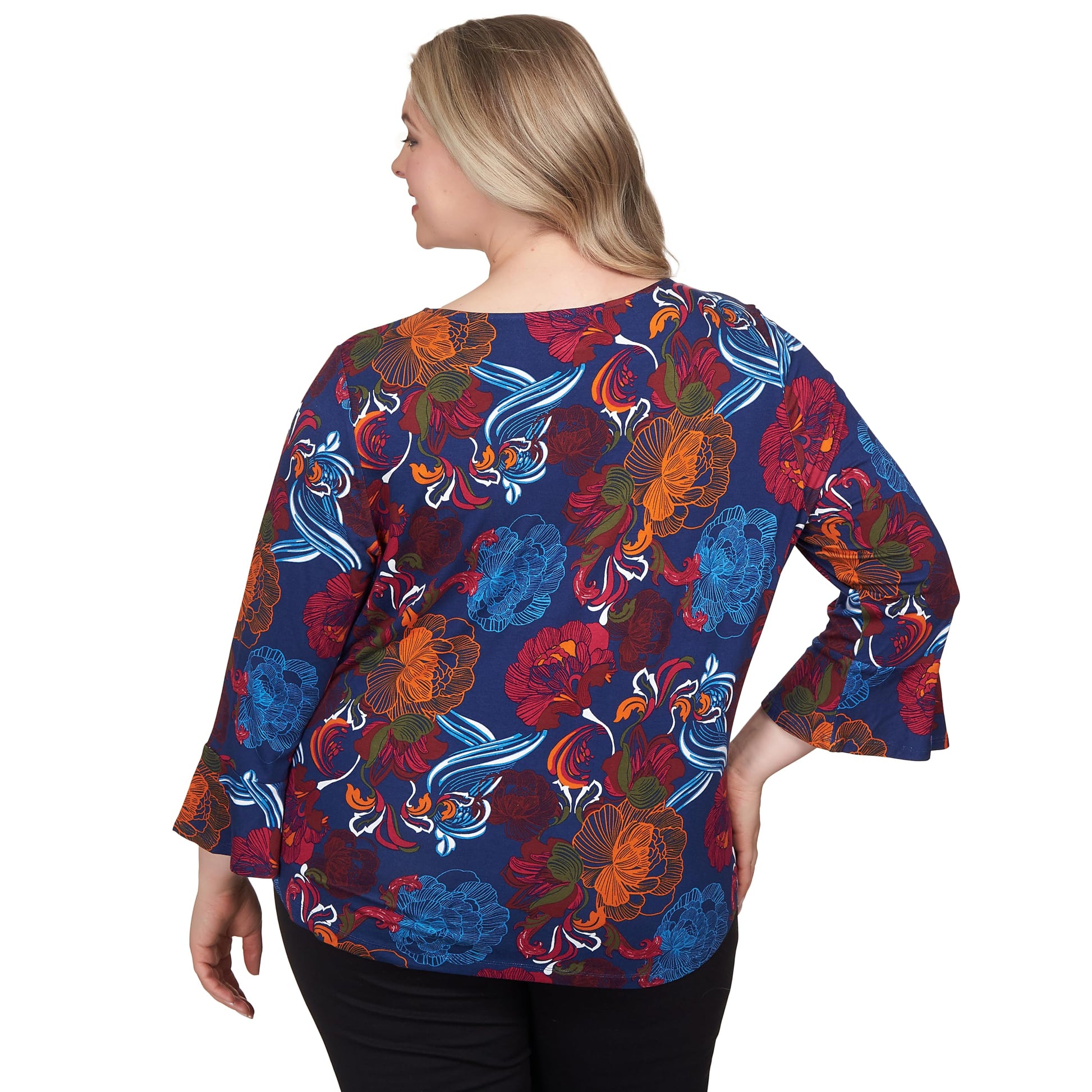 Ruby Rd. Must Have Rayon Floral Top with Bell Sleeve Washable