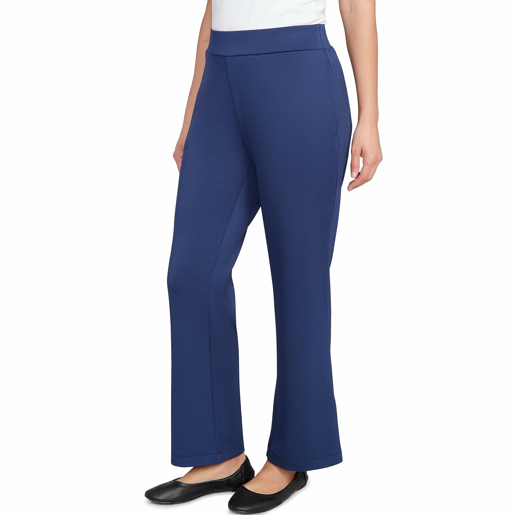 Flair in every step! Step up your style with these wide-leg pants made from solid scuba fabric. The pull-on waistband offers comfort, while side pockets keep it practical. The open floral cutouts with delicate embroidery at the hem add a touch of elegance and effortless flair to every move.