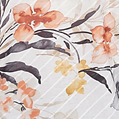 Add a touch of whimsy to your wardrobe with our stunning watercolor floral top. The intricate pattern, rendered in soft hues, creates a captivating effect. Featuring a classic crewneck and three-quarter sleeves.